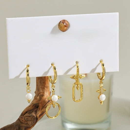 14k Gold Plated Copper And 925 Sterling Silver Cubic Zirconia Earring Hoop Set