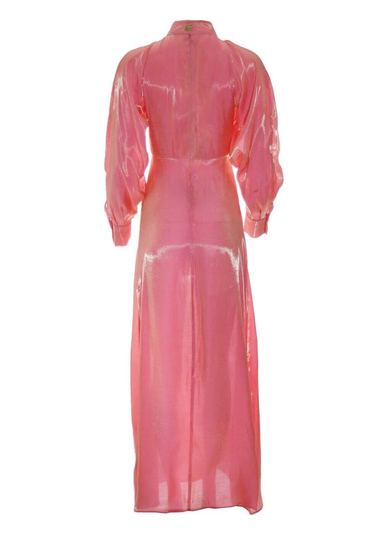 ADIBA Designer Long Sleeves Maxi Pink Gladiolus Dress With Side Slit Size M
