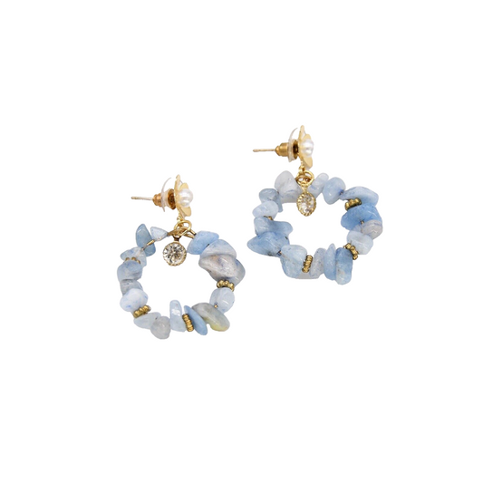 Pearl Flower Post And Baby Blue Beaded Round Drop Earring