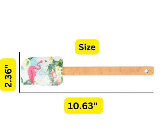 White Flamingo Wooden Handle Silicone Scrapper/Stirring Spatula Set Of 2