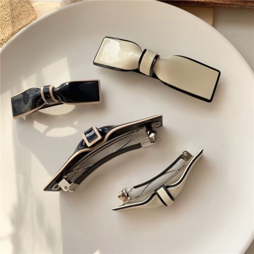 Black And White Houndstooth Handmade Fabric Long hair Barrette/ bow