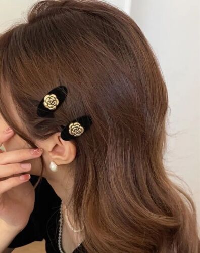 Black Mini Velvet Gold Flower Hair Clips Set Of 2