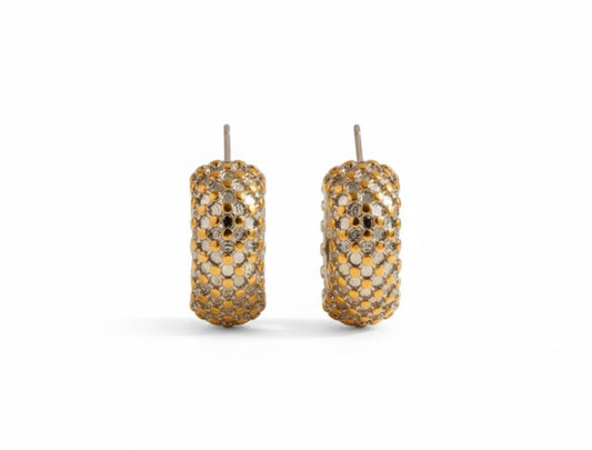 Gold Silver Plated Stainless Steel Pave Two Tone Hoop Earrings
