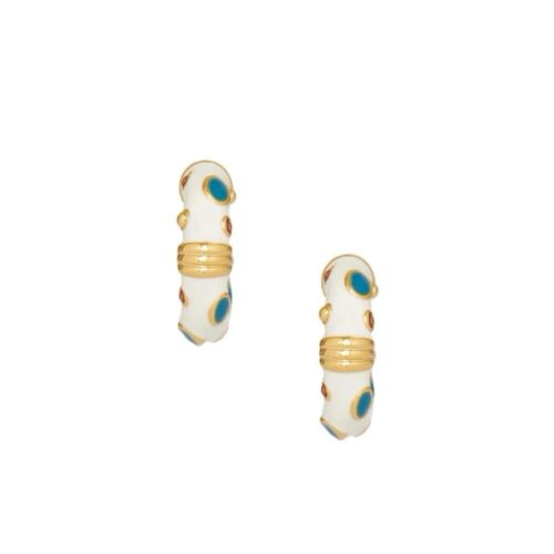 White Enamel Glazed Gold Plated Copper Mini Hoop Earrings