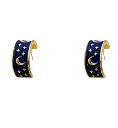 Gold Mini Enamel Blue Moon and Stars Hoop Earrings