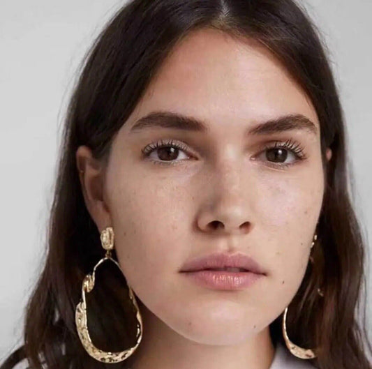 Gold Hammered /Textured Oval Drop Earring