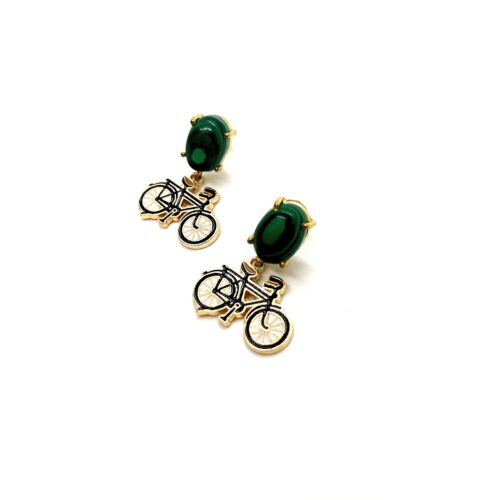 Exclusive Handmade Green Malachite stone and enamel Bike Earrings