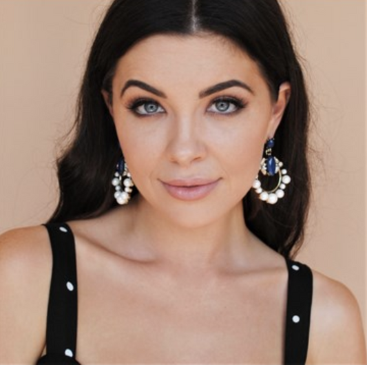 Elegant Pearl And Blue Cubic Zirconia Round Drop Earrings