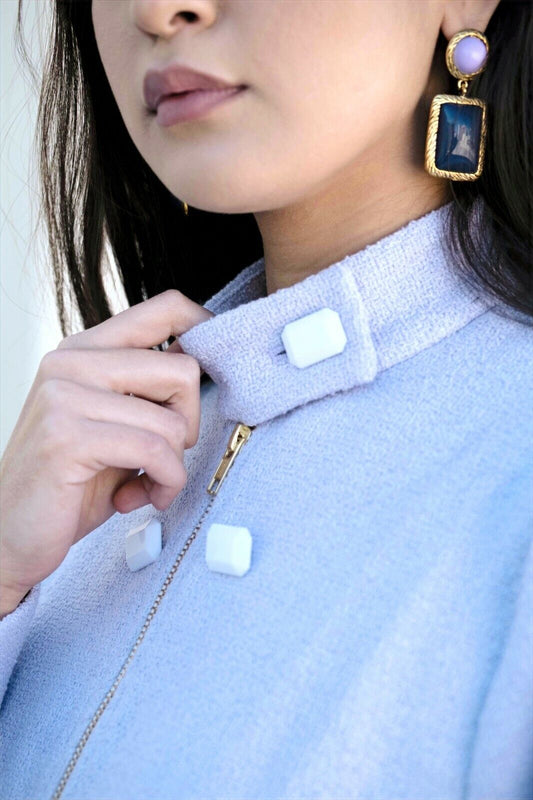Blue And Purple Fashion Statement Square Drop Earring