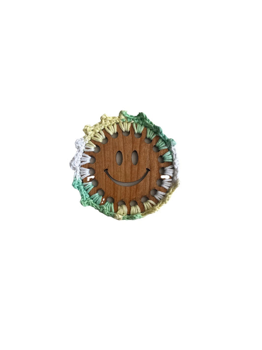 Mint Green Handmade Crochet And Wood Coffee Round Coaster Set