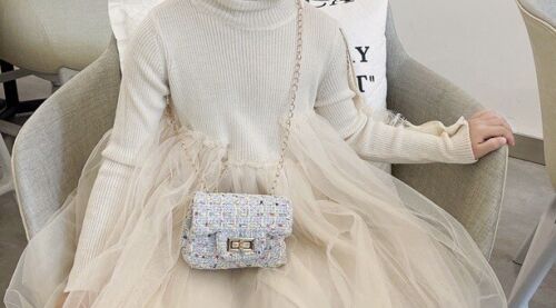 Baby Blue Mini Tweed Kids/Adult Crossbody Clutch/Purse/Bag