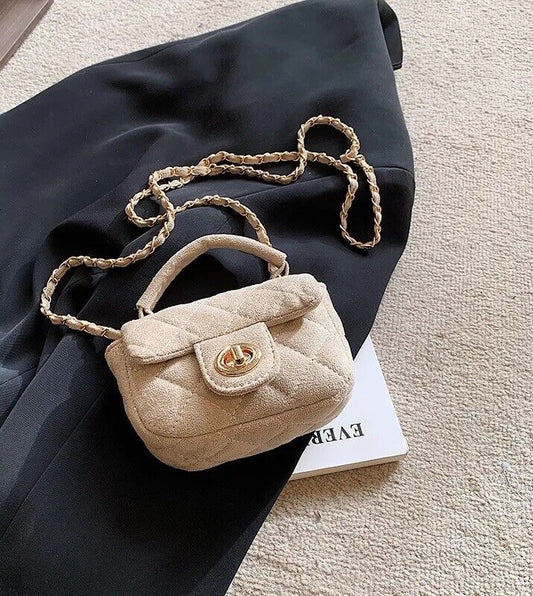 Beige Mini Soft Suede Quilted Crossbody Elegant Clutch/Purse/Bag