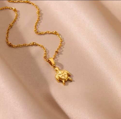 Gold Plated Stainless Turtle Pendant Chain Necklace