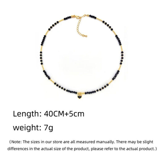 Black And Gold Beaded Heart Pendant Necklace