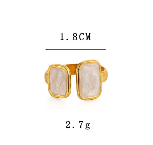 Gold Double White Stone Stainless Steel Square Adjustable Ring