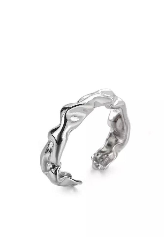 Gold Plated Hammered Style Geometric Adjustable Ring Size 7