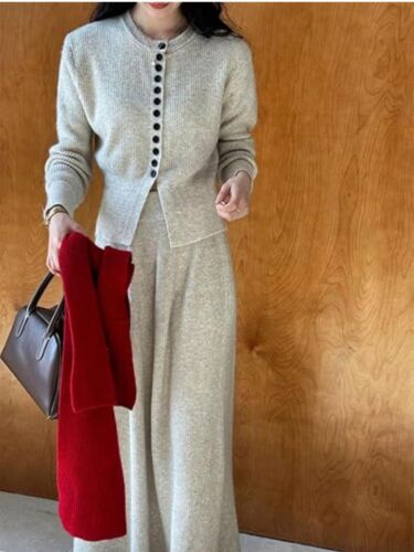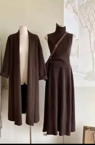 Brown Cashmere Cozy 3 Piece Skirt, Top And Cardigan Knit Set