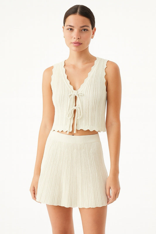 Alpaca Wool Beige/White Cozy Knit 2 Piece Skirt And Sweater Set
