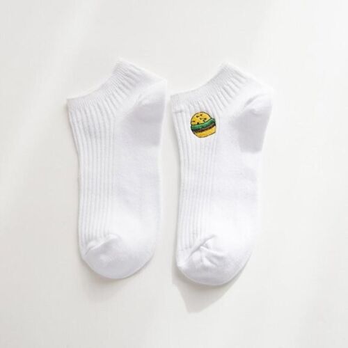 Burger Embroidered White Socks