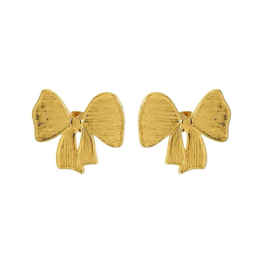 18k Gold Plated Stainless Steel Hammered Statement Bow Stud Earring