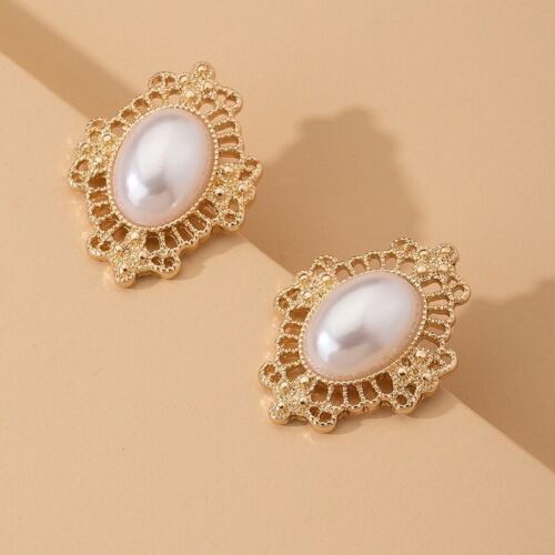 Gold Plated and White Enamel Design Irregular Shape Stud Earring