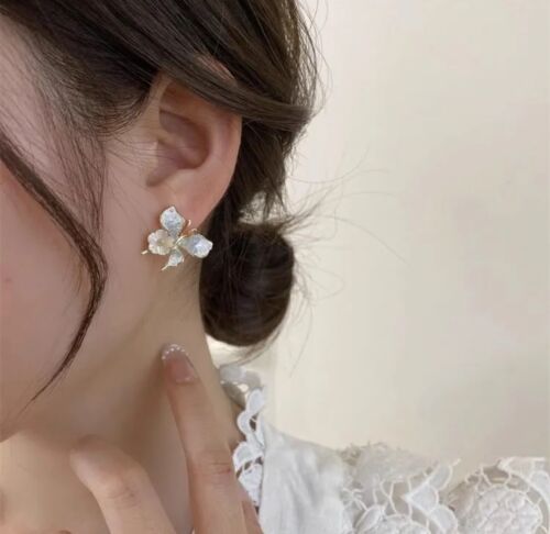 Gradient Blue Glass Stones Gold Floral Butterfly Stud Earring