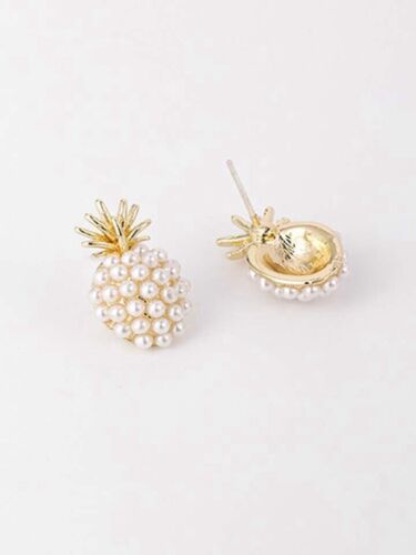 Gold Plated Stainless Steel Pearls Floral Petal Stud Earring