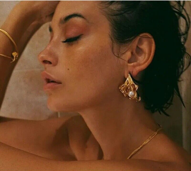 14k Gold Plated Copper Vintage Style Pearl Matte Stud Earrings