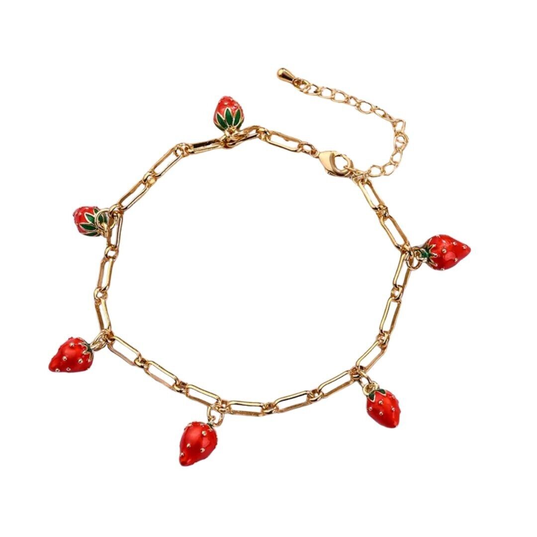 18k Gold Plated Copper Red Enamel Strawberry Charms Bracelet