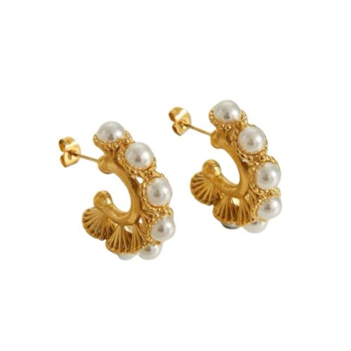 18k Gold Plated Stainless Steel Pearls Hoop Earring
