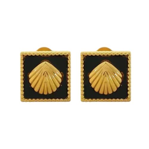 18k Gold Plated Stainless Steel Square Shell And Black Acrylic Stud Earring