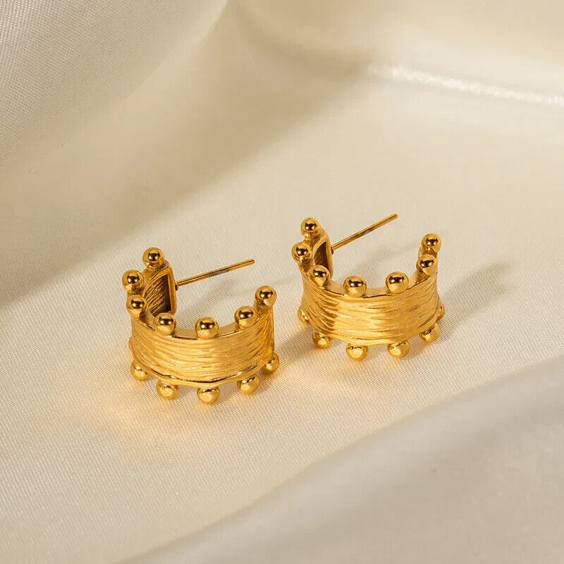 18k Gold Plated Stainless Steel Studded Hoop Earring