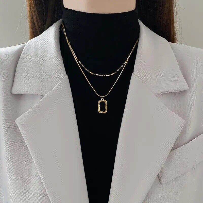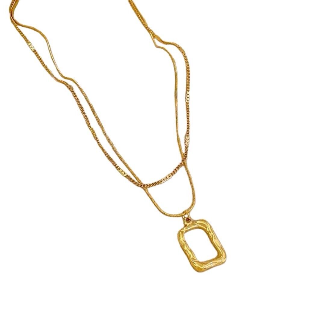 18k Gold Plated Titanium Steel Double Chain With Square Pendant Necklace