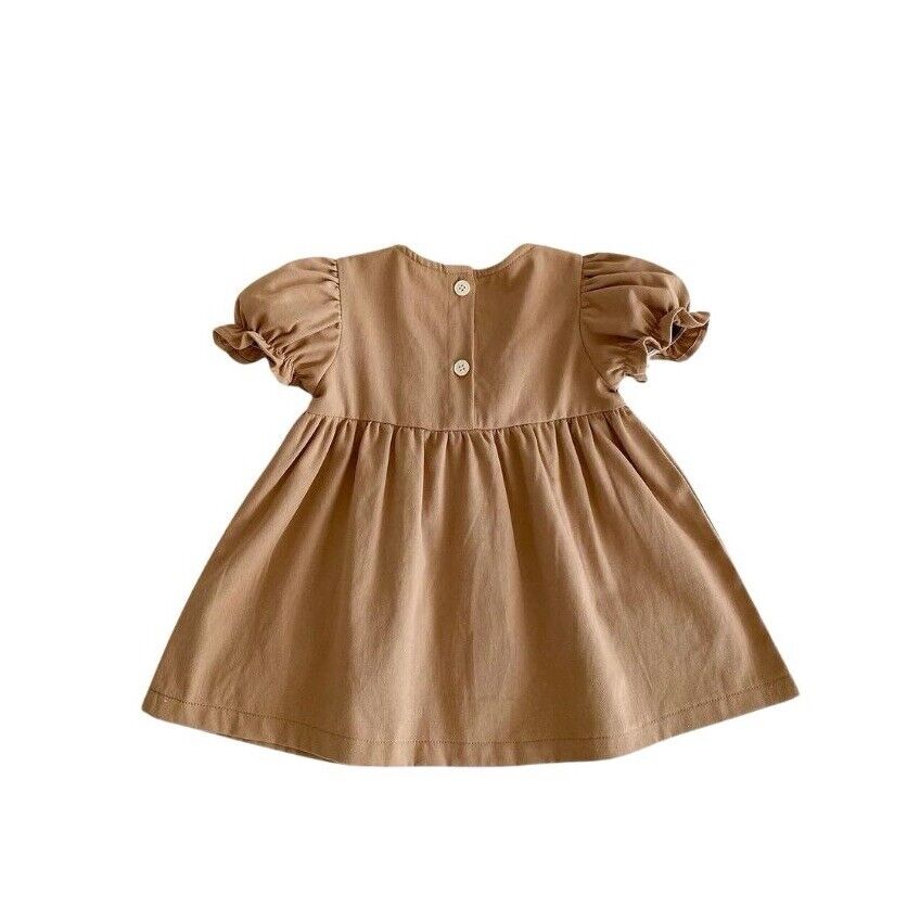 3T Baby Girl Beige Bow Preppy Style A Line Cotton Dress