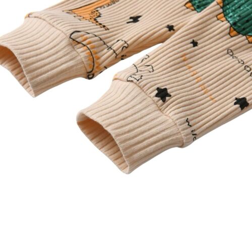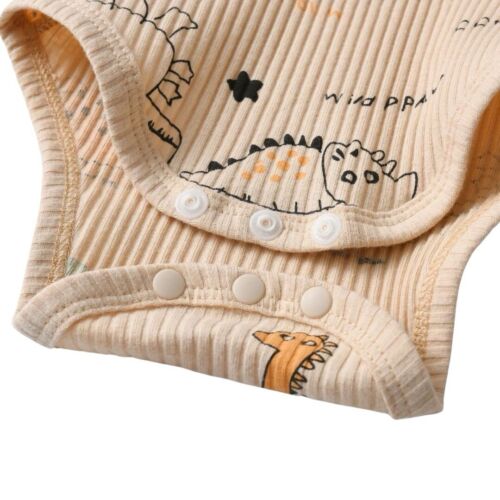 Get your little dinosaur lover ready for any occasion with this adorable 3-piece outfit set! The set includes a beige cotton bodysuit with a dinosaur pattern, a pair of matching pants, and a hat. Perfect for travel, activewear, parties, or casual outings, this outfit will keep your little one comfortable and cute.