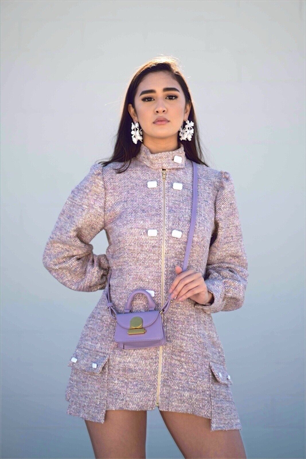 ADIBA Designer Neutral Beige Colour Celina Tweed Coat Dress size S