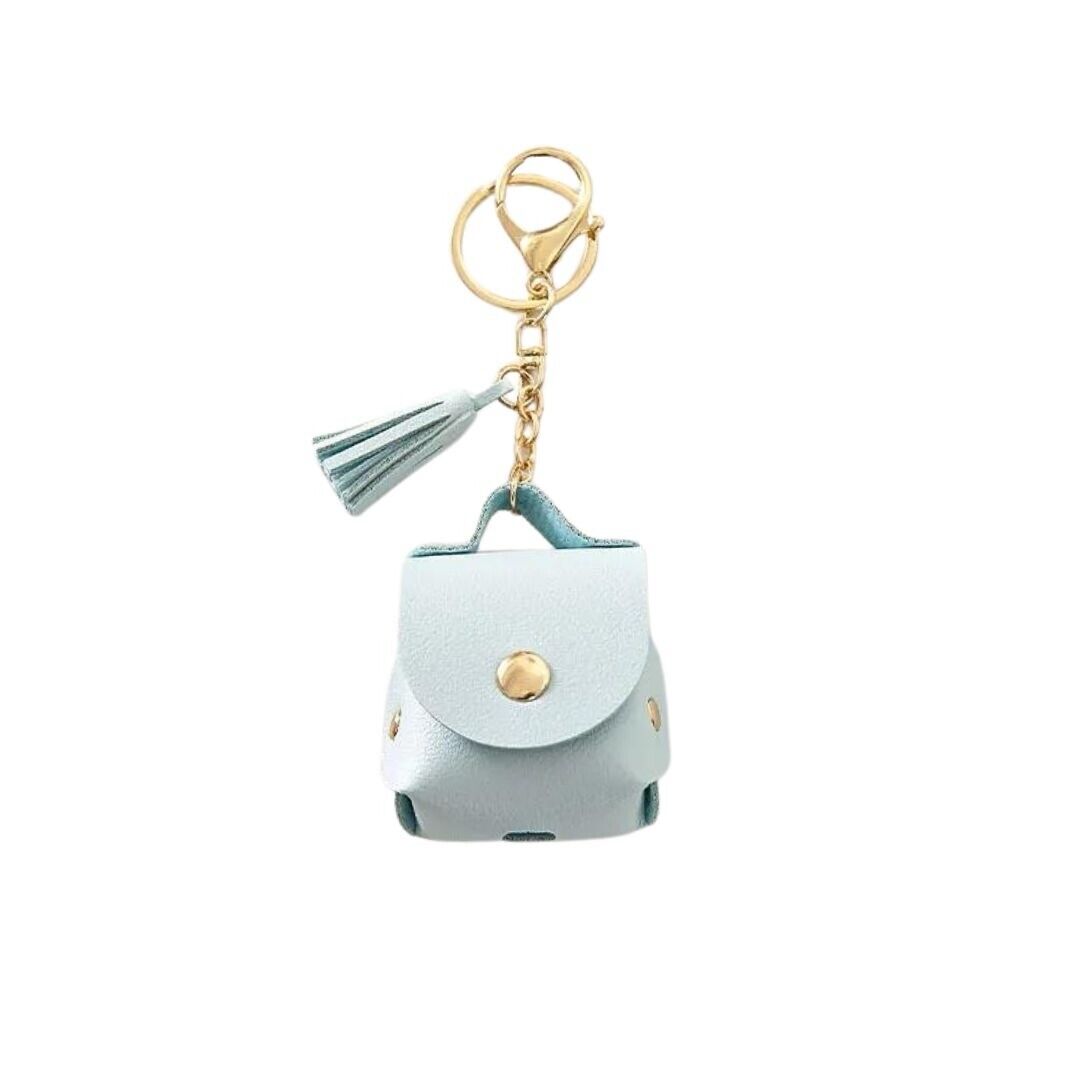 Baby Blue Faux Leather Earphone Cover Case Protector For Airpods 1/2 Keychain
