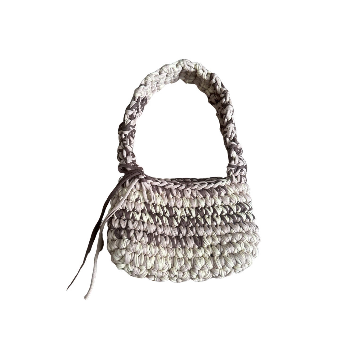 Beige And Brown Egyptian Cotton Crochet Handmade Shoulder Bag