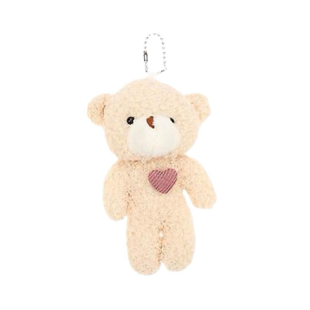 This adorable key chain features a cute bear design in beige and pink colors, perfect for adding a touch of whimsy to your keys or bag. The handmade design includes crochet accents and is made from fabric material.