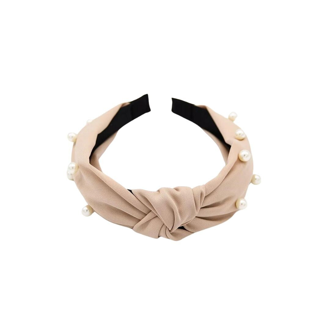 Beige Beautiful Lightly Beaded With pearls knot headband