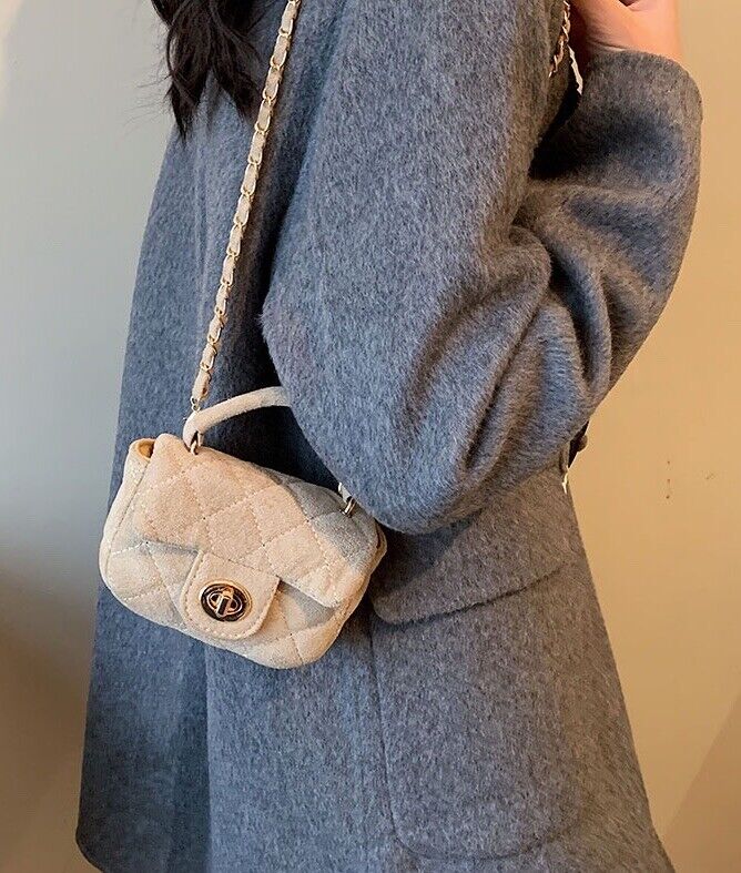 Beige Mini Soft Suede Quilted Crossbody Elegant Clutch/Purse/Bag
