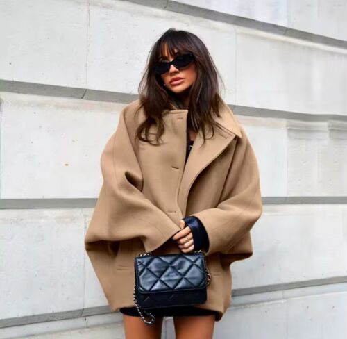 Beige Oversized Long Sleeves Single Breasted Jacket