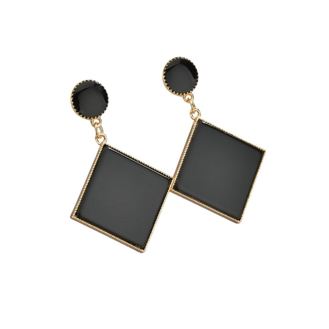 Black And Gold Plated Details Triangle Acrylic Drop Earring