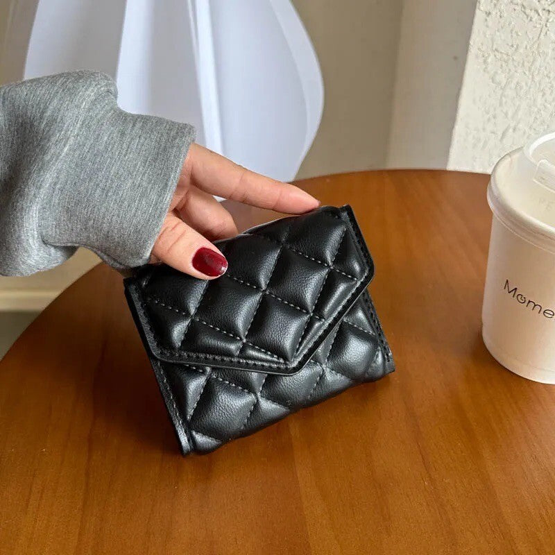 Black Card Holder Mini Quilted Wallet