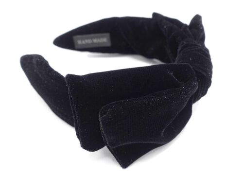 Crafted with high quality material, this headband is versatile design makes it suitable for any outfit, making it a must-have accessory for any fashion-conscious woman. Add this black shimmer silky velvet bow headband to your collection and elevate your style game.