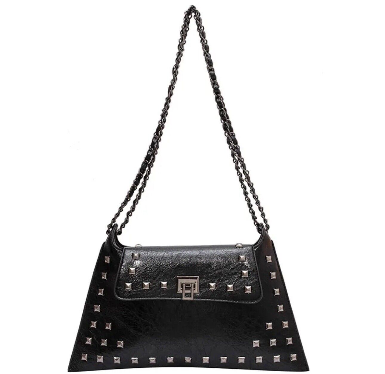 Black Studded Faux Leather With Black Metal Accents Women’s Bag