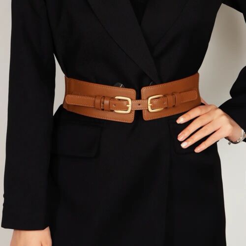 Camel And Gold Double Buckle Adjustable Elastic Band Women’s Belt