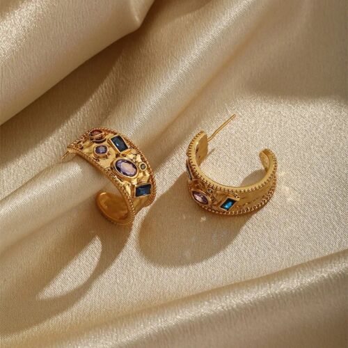 Colourful Zirconia Stones 18k Gold Plated Mini Hoop Earrings