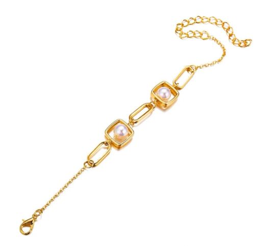 Gold Geometric Square Pearls Chains Gold Bracelet