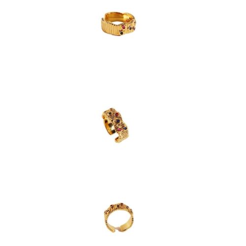 Gold Plated Brass With Zircon Colourful Stones Adjustable Ring